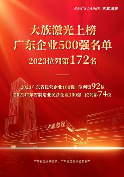以500强企业为代表的广东大企业,是全省各产业链龙头,带领经济发展的生力军,实践中国式现代化的重要力量。大族激光连续多年上榜“广东500强企业”,彰显了其强大实力,作为中国工业激光设备制造的开拓者,大族激光深耕广东近30年,始终紧跟国家发展大局及重要战略部署,着力推动产业经济走高质量发展道路。