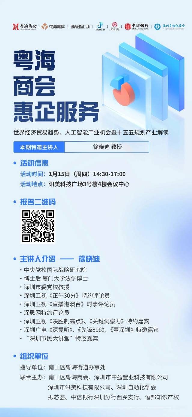深圳自动化学会诚邀参加惠企服务专场活动——解读世界经济贸易趋势、人工智能产业机会暨十五五规划产业